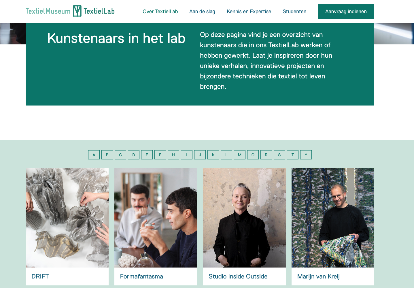 Het TextielLab lanceerde een vernieuwde website, met profielen voor kunstenaars en projecten. Deze aanpassing biedt een mooi, online podium voor kunstenaars en benadrukt onze extramurale collectie.